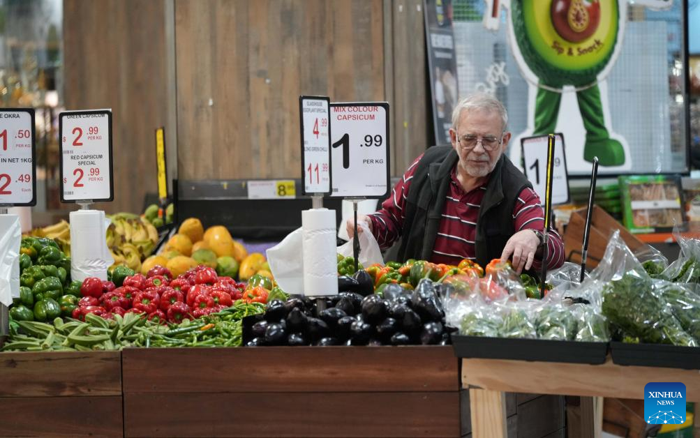 A customer selects vegetable at a shopping center in Canberra, Australia, Sept. 3, 2025. Australia's rate of economic growth accelerated to 0.6 percent in the second quarter of 2025, according to official figures released on Wednesday. (Photo by Zhang Na/Xinhua)