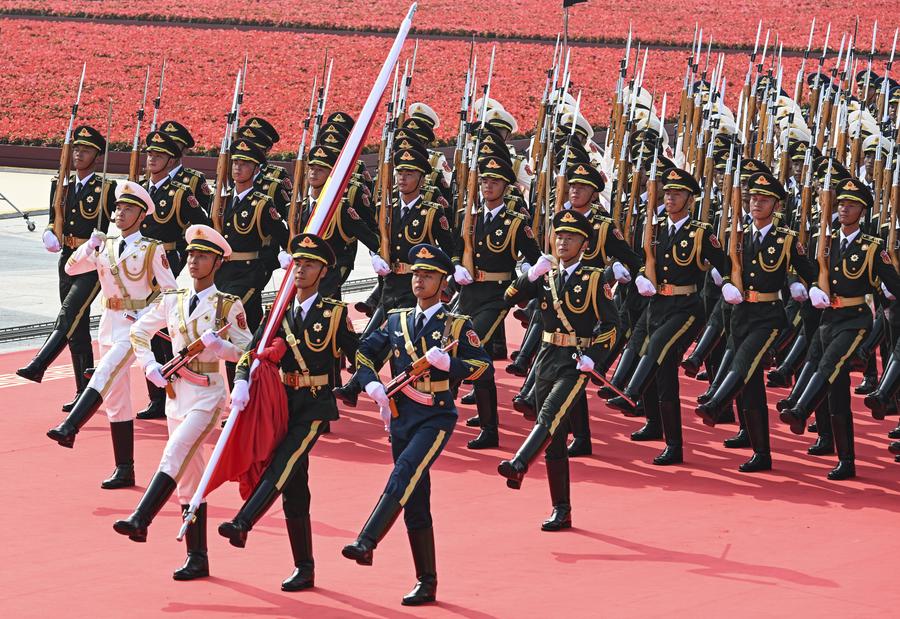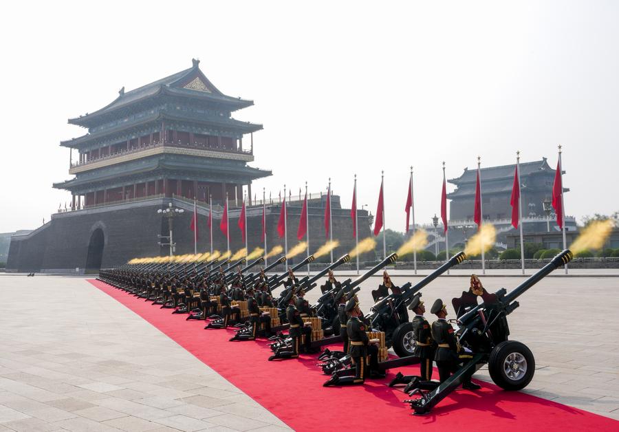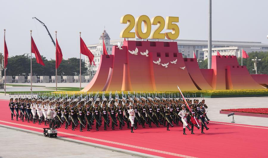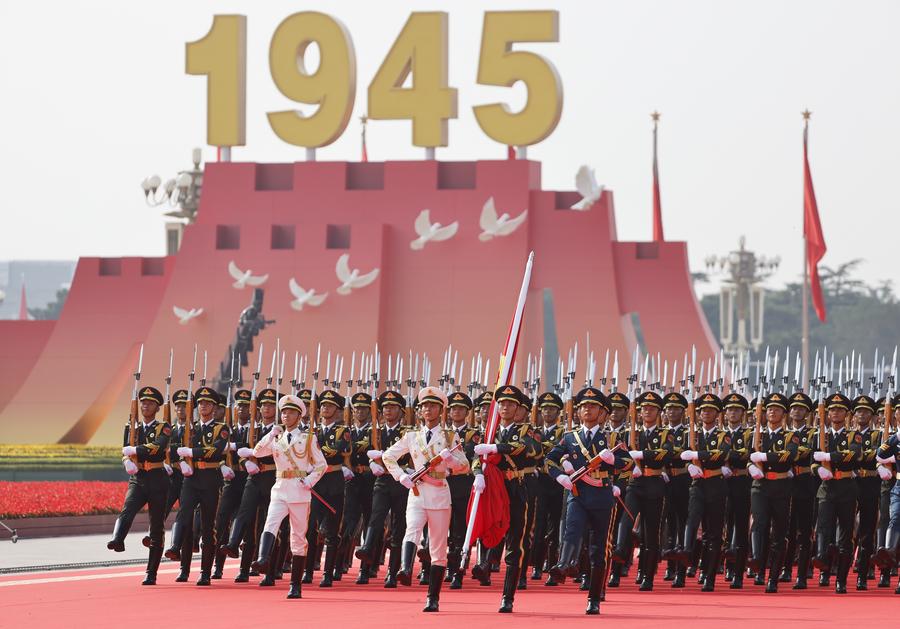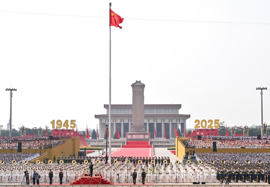 A grand gathering to commemorate the 80th anniversary of the victory in the Chinese People's War of Resistance against Japanese Aggression and the World Anti-Fascist War is held in Beijing, capital of China, Sept. 3, 2025. (Xinhua/Yao Dawei)Honor guards escort the Chinese national flag from the Monument to the People's Heroes to the flagpole during a grand gathering to mark the 80th anniversary of the victory in the Chinese People's War of Resistance against Japanese Aggression and the World Anti-Fascist War in Beijing, capital of China, Sept. 3, 2025. (Xinhua/Fei Maohua)Honor guards escort the Chinese national flag during a grand gathering to mark the 80th anniversary of the victory in the Chinese People's War of Resistance against Japanese Aggression and the World Anti-Fascist War in Beijing, capital of China, Sept. 3, 2025. (Xinhua/Fei Maohua)Honor guards escort the Chinese national flag from the Monument to the People's Heroes to the flagpole for a flag-raising ceremony during a grand gathering to mark the 80th anniversary of the victory in the Chinese People's War of Resistance against Japanese Aggression and the World Anti-Fascist War in Beijing, capital of China, Sept. 3, 2025. (Xinhua/Zhan Yan)Soldiers fire gun salutes during a grand gathering to commemorate the 80th anniversary of the victory in the Chinese People's War of Resistance against Japanese Aggression and the World Anti-Fascist War in Beijing, capital of China, Sept. 3, 2025. (Xinhua/Mu Yu)Soldiers fire gun salutes during a grand gathering to commemorate the 80th anniversary of the victory in the Chinese People's War of Resistance against Japanese Aggression and the World Anti-Fascist War in Beijing, capital of China, Sept. 3, 2025. (Xinhua/Jiang Wenyao)Honor guards escort the Chinese national flag during a grand gathering to mark the 80th anniversary of the victory in the Chinese People's War of Resistance against Japanese Aggression and the World Anti-Fascist War in Beijing, capital of China, Sept. 3, 2025. (Xinhua/Li An)A national flag-raising ceremony is held at Tian'anmen Square during a grand gathering to commemorate the 80th anniversary of the victory in the Chinese People's War of Resistance against Japanese Aggression and the World Anti-Fascist War in Beijing, capital of China, Sept. 3, 2025. (Xinhua/Xia Yifang)A national flag-raising ceremony is held at Tian'anmen Square during a grand gathering to mark the 80th anniversary of the victory of the Chinese People's War of Resistance against Japanese Aggression and the World Anti-Fascist War, which includes a military parade, in Beijing, capital of China, Sept. 3, 2025. (Xinhua/Huang Zongzhi)A grand gathering to commemorate the 80th anniversary of the victory in the Chinese People's War of Resistance against Japanese Aggression and the World Anti-Fascist War is held in Beijing, capital of China, Sept. 3, 2025. (Xinhua/Li He)■