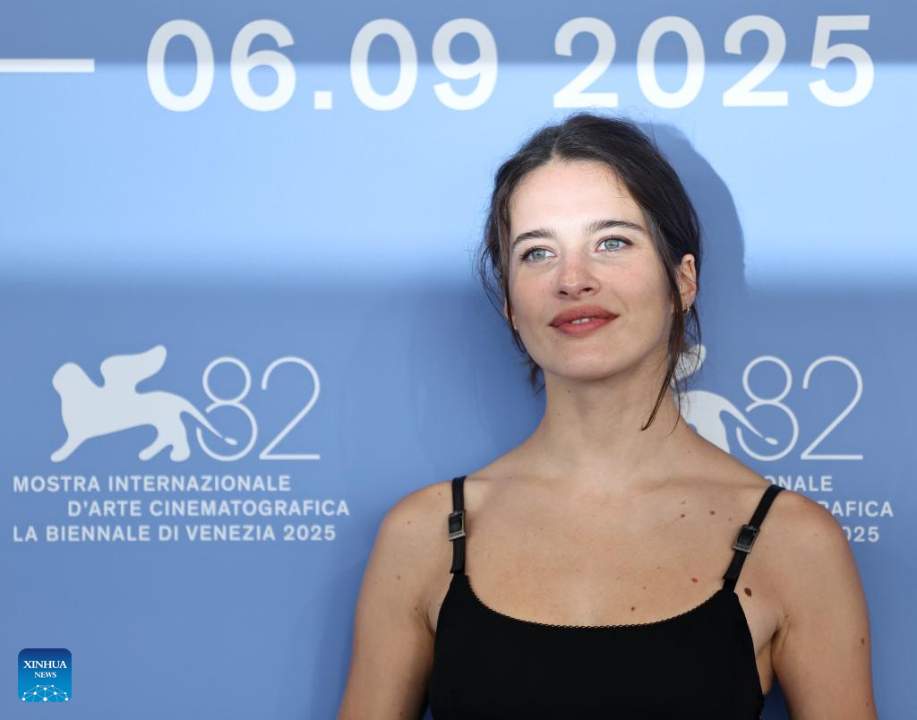 Rebecca Marder of the film "L'Etranger" poses for the photocall during the 82nd Venice Film Festival in Venice, Italy, Sept. 2, 2025. (Xinhua/Li Jing)