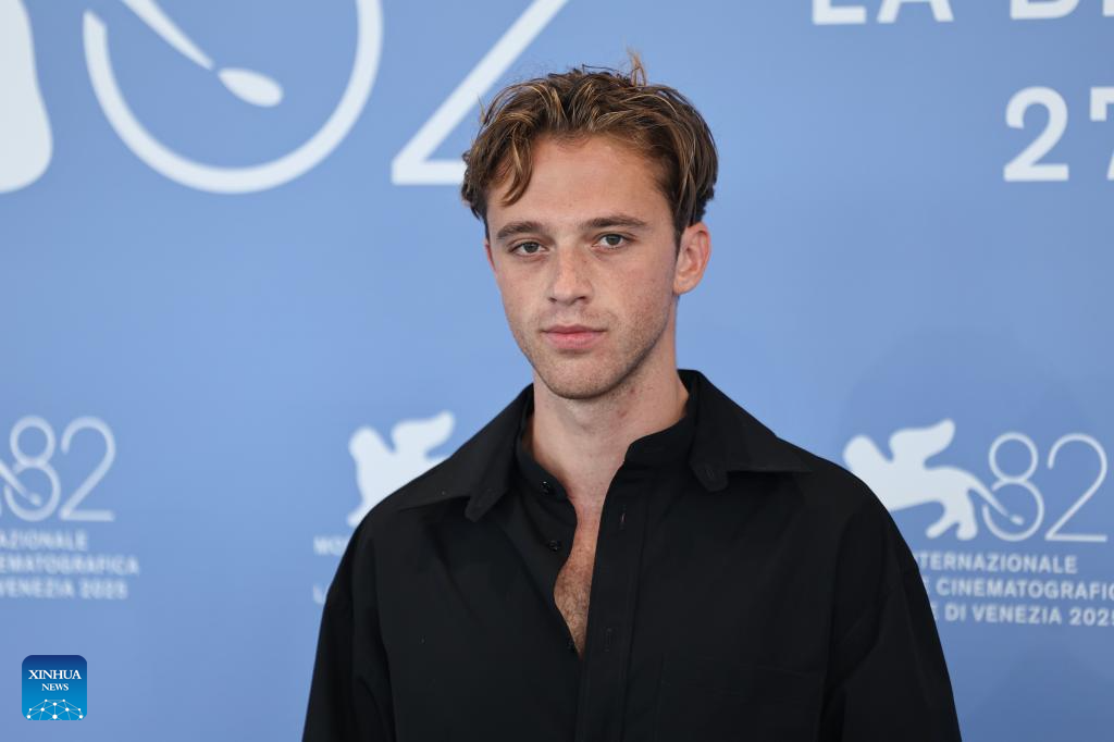 Benjamin Voisin of the film "L'Etranger" poses for the photocall during the 82nd Venice Film Festival in Venice, Italy, Sept. 2, 2025. (Xinhua/Li Jing)
