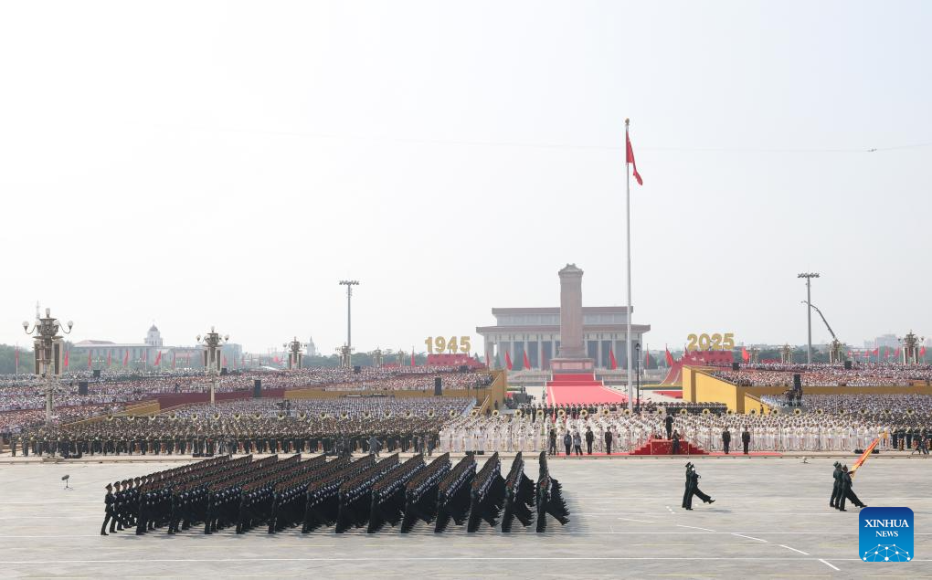 The formation of the People's Liberation Army Rocket Force marches through Tian'anmen Square during a military parade in Beijing, capital of China, Sept. 3, 2025. China on Wednesday held a grand gathering to commemorate the 80th anniversary of the victory in the Chinese People's War of Resistance against Japanese Aggression and the World Anti-Fascist War. (Xinhua/Huang Zongzhi)