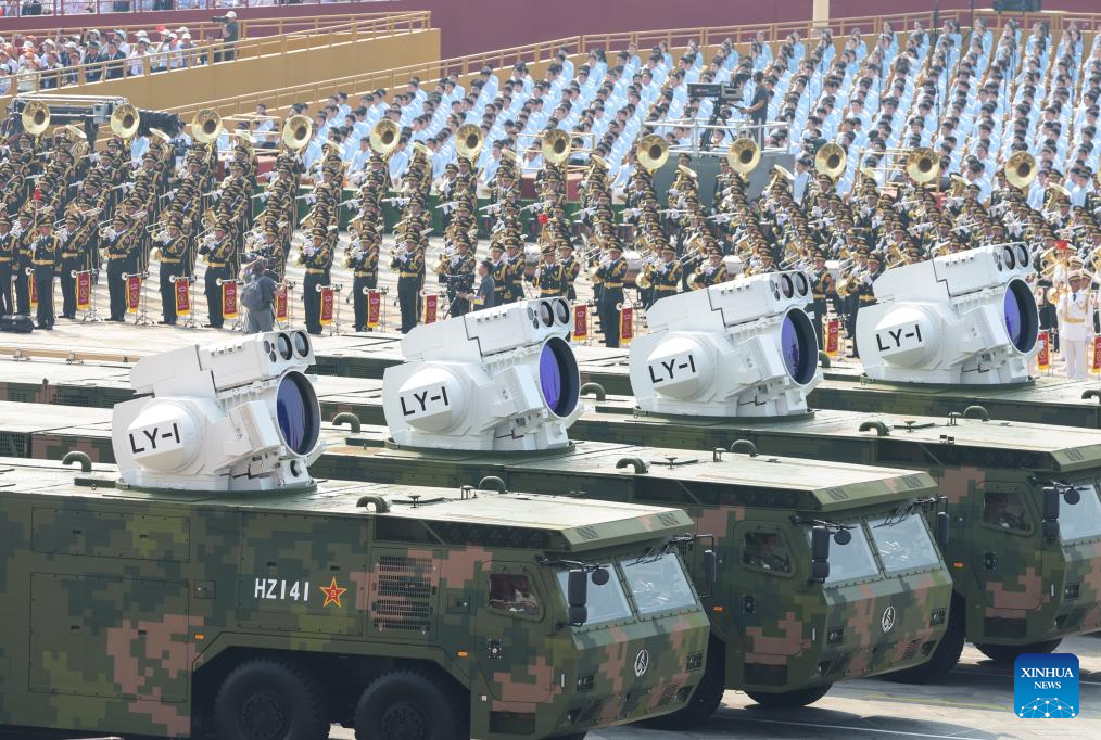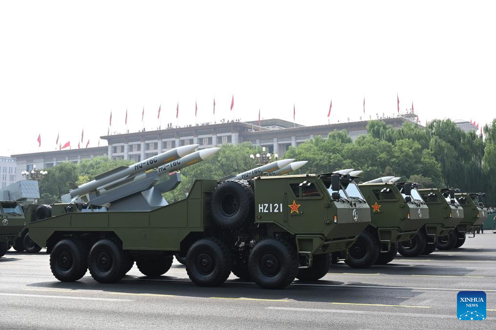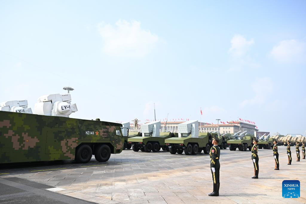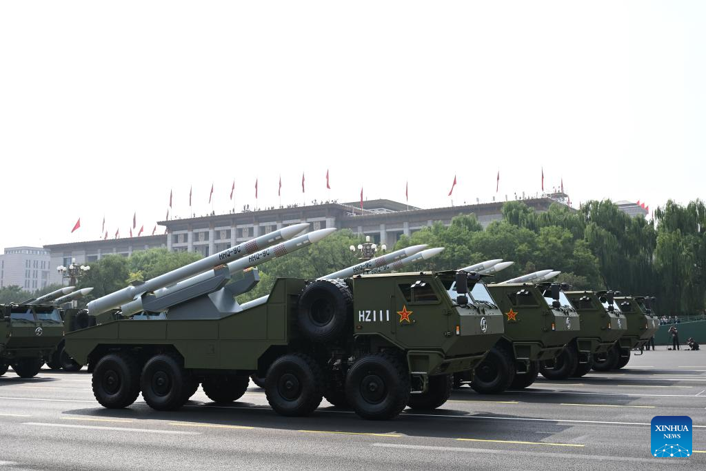 The ship-based air defense weapons formation attends a military parade in Beijing, capital of China, Sept. 3, 2025. China on Wednesday held a grand gathering to commemorate the 80th anniversary of the victory in the Chinese People's War of Resistance against Japanese Aggression and the World Anti-Fascist War. (Xinhua/Yang Guanyu)