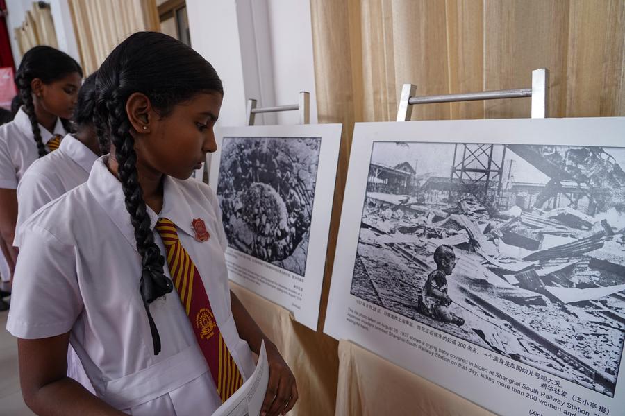 The photo exhibition, hosted by the Chinese embassy in Sri Lanka, was held Tuesday at Hindu College in Colombo. More than 40 rare historical photos on display vividly depict the Chinese people's arduous struggle against Japanese aggression as well as the joint efforts of people around the world to safeguard peace.