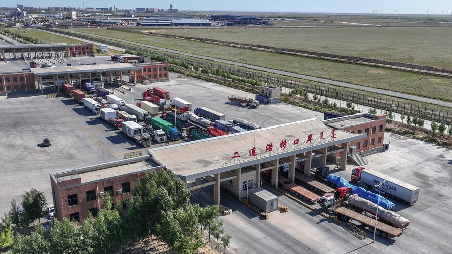An aerial drone photo taken on Sept. 3, 2025 shows a China-Europe freight train entering a rail port in Erenhot, north China's Inner Mongolia Autonomous Region. (Photo by Guo Pengjie/Xinhua)Passengers go through border inspection process via express channel at a land port in Erenhot, north China's Inner Mongolia Autonomous Region, Sept. 3, 2025. (Xinhua/Ma Jinrui)A foreign passenger goes through border inspection process at a land port in Erenhot, north China's Inner Mongolia Autonomous Region, Sept. 3, 2025. (Xinhua/Ma Jinrui)Immigration officers inspect a China-Europe freight train at a rail port in Erenhot, north China's Inner Mongolia Autonomous Region, Sept. 3, 2025. (Xinhua/Ma Jinrui)■