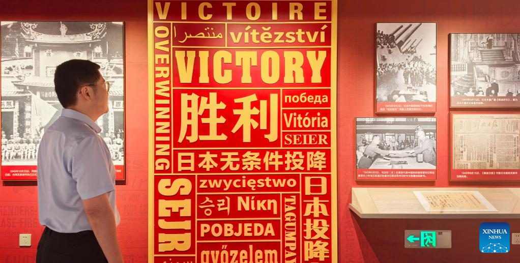 A man visits an exhibition to commemorate the 80th anniversary of victory in the Chinese People's War of Resistance against Japanese Aggression and the recovery of Taiwan, Sept. 4, 2025. (Xinhua/Ma Xinran)