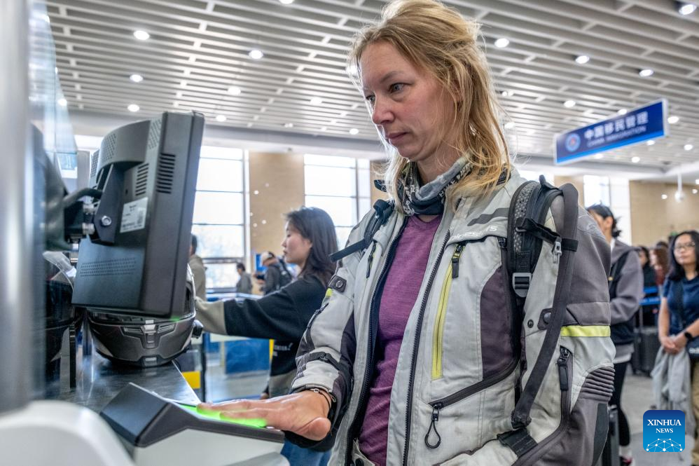 A foreign passenger goes through border inspection process at a land port in Erenhot, north China's Inner Mongolia Autonomous Region, Sept. 3, 2025.