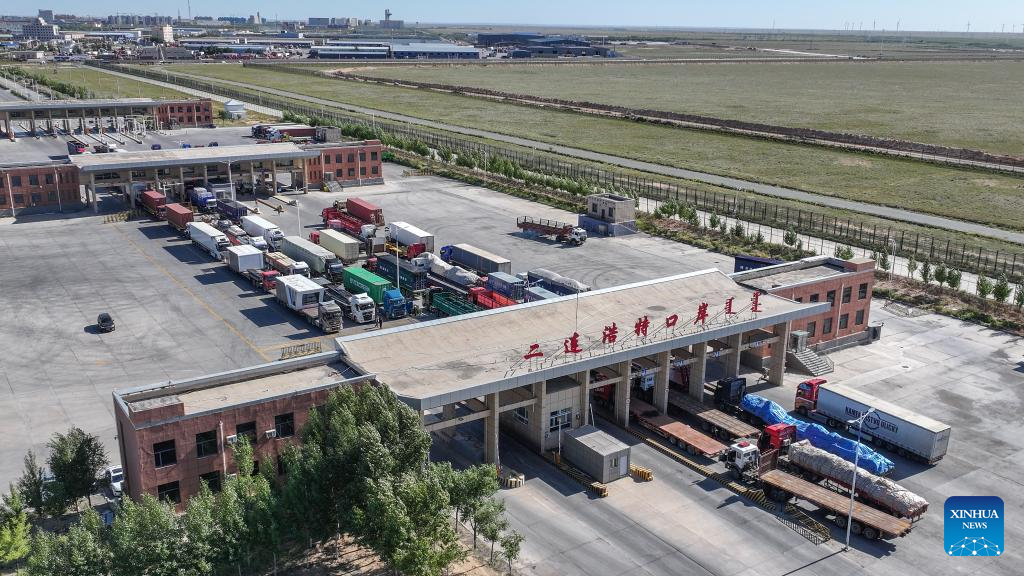 Erenhot, the largest land port on the China-Mongolia border, is a pivotal entry-exit point for the central route of the China-Europe railway service. As of Sept. 3, inbound and outbound passenger traffic volumes and the number of vehicles driving through Erenhot reached 1.976 million and 512,000, respectively, up by 13.2 percent and 16.6 percent compared with the same period of last year. (Xinhua/Ma Jinrui)