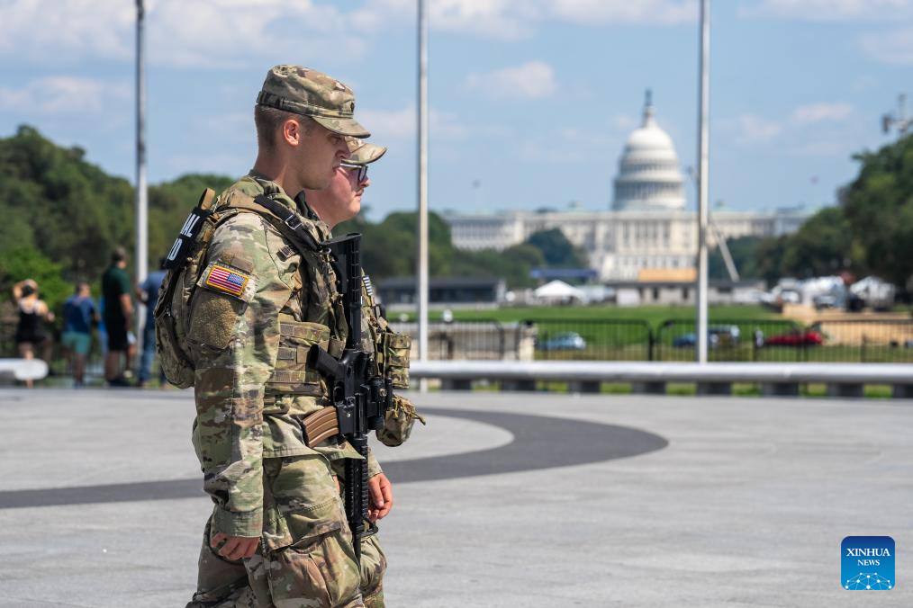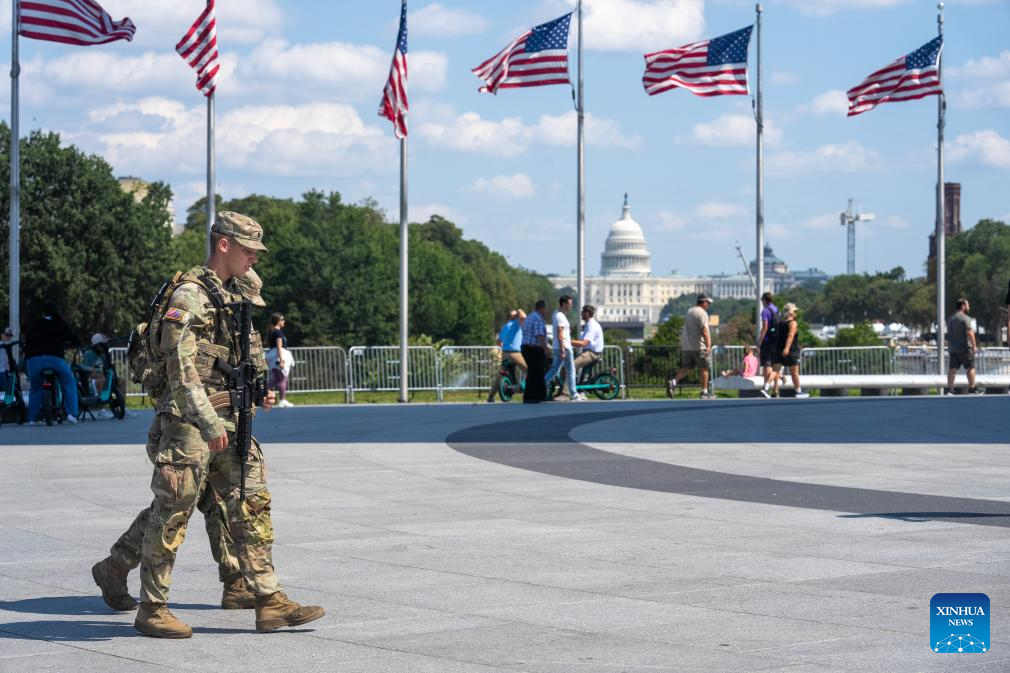Members of the National Guard patrol in Washington, D.C., the United States, Sept. 4, 2025. Washington, D.C. has filed a lawsuit against the Trump administration over the deployment of National Guard troops in the nation's capital, the district's Attorney General Brian Schwalb announced Thursday. (Xinhua/Hu Yousong)