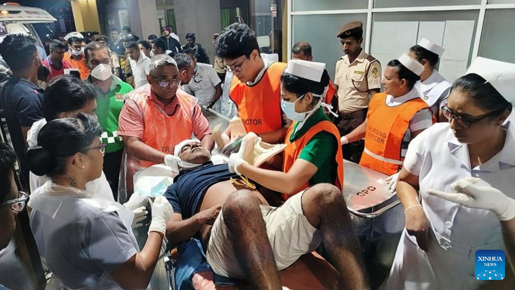 Around 16 were injured and hospitalized, according to police. A spokesperson for a local hospital said some of them are in critical condition. (Photo by Gayan Sameera/Xinhua)
