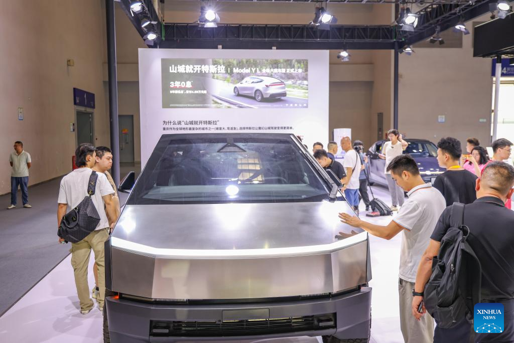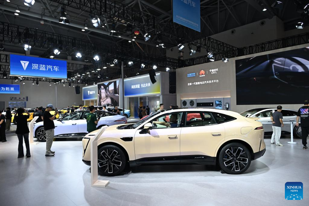 A new energy vehicle is pictured during the World Smart Industry Expo 2025 in southwest China's Chongqing Municipality, Sept. 5, 2025.(Xinhua/Wang Quanchao)