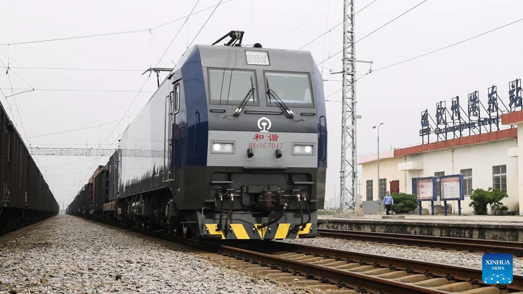 A freight train pulls into the Qinzhou Port East Railway Station in Qinzhou City, south China's Guangxi Zhuang Autonomous Region, Sept. 4, 2025.