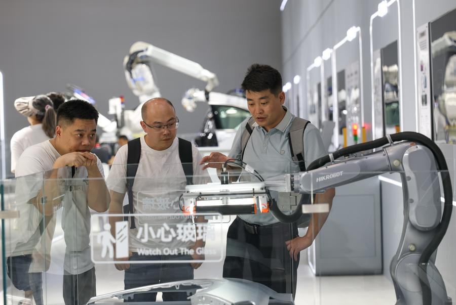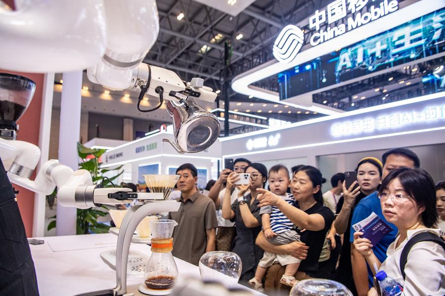 A visitor touches a robot at the venue of the World Smart Industry Expo 2025 in southwest China's Chongqing, Sept. 5, 2025. (Xinhua/Chen Cheng)This photo taken on Sept. 5, 2025 shows smart inspection devices for electric equipment at the venue of the World Smart Industry Expo 2025 in southwest China's Chongqing. (Xinhua/Huang Wei)Visitors watch a robot boxing game at the venue of the World Smart Industry Expo 2025 in southwest China's Chongqing, Sept. 5, 2025. (Xinhua/Huang Wei)A robot makes coffee for visitors at the venue of the World Smart Industry Expo 2025 in southwest China's Chongqing, Sept. 5, 2025. (Xinhua/Tang Yi)A robot interacts with visitors at the venue of the World Smart Industry Expo 2025 in southwest China's Chongqing, Sept. 5, 2025. (Xinhua/Tang Yi)A visitor tries a smart hybrid aircraft at the venue of the World Smart Industry Expo 2025 in southwest China's Chongqing, Sept. 5, 2025. (Xinhua/Tang Yi)A visitor tries VoloCity, an air taxi, at the venue of the World Smart Industry Expo 2025 in southwest China's Chongqing, Sept. 5, 2025. (Xinhua/Tang Yi)Visitors learn about an industrial robot at the venue of the World Smart Industry Expo 2025 in southwest China's Chongqing, Sept. 5, 2025. (Xinhua/Chen Cheng)Robot players compete during a 3v3 robot football match at the World Smart Industry Expo 2025 in southwest China's Chongqing, Sept. 5, 2025. (Xinhua/Chen Cheng)A robot brews coffee during the World Smart Industry Expo 2025 in southwest China's Chongqing, Sept. 5, 2025. (Xinhua/Wang Quanchao)A staff member demonstrates a 3D tracking scanner during the World Smart Industry Expo 2025 in southwest China's Chongqing, Sept. 5, 2025. (Xinhua/Chen Cheng)This photo taken on Sept. 5, 2025 shows a view of the World Smart Industry Expo 2025 in southwest China's Chongqing. (Xinhua/Huang Wei)■