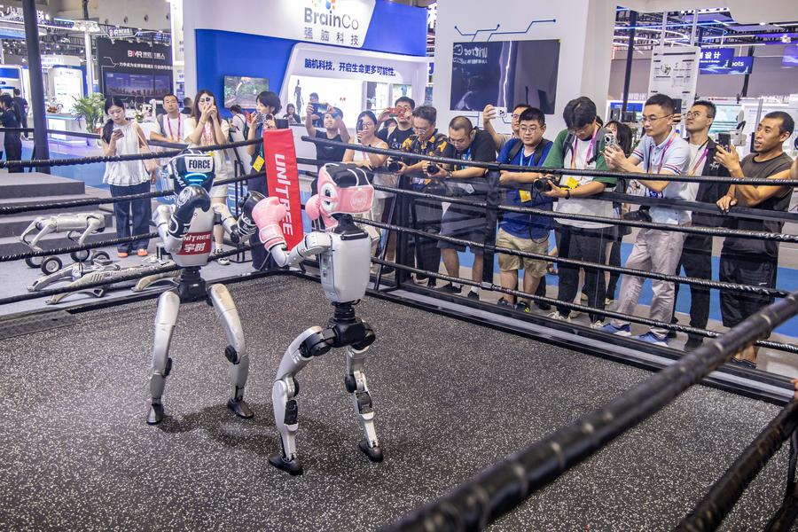 Journalists and guests watch a robot boxing game at the booth of Unitree at the venue of the World Smart Industry Expo 2025 in southwest China's Chongqing, Sept. 4, 2025. The expo is scheduled for Sept. 5 to 8 in Chongqing to present cutting-edge achievements of the smart industry through professional exhibitions. (Xinhua/Tang Yi)An aerial drone photo taken on Sept. 3, 2025 shows a China-Europe freight train entering a rail port in Erenhot, north China's Inner Mongolia Autonomous Region. Erenhot, the largest land port on the China-Mongolia border, is a pivotal entry-exit point for the central route of the China-Europe railway service. (Photo by Guo Pengjie/Xinhua)An aerial drone photo taken on Sept. 2, 2025 shows a new energy base in Kubuqi Desert, north China's Inner Mongolia Autonomous Region. In recent years, Inner Mongolia has carried out integrated projects for sand prevention and control as well as wind and photovoltaic power to advance the improvement efforts in Kubuqi Desert. (Xinhua/Li Zhipeng)This aerial drone photo taken on Sept. 4, 2025 shows the cruise ship "Star Voyager" of Star Cruises docking at Sanya Phoenix Island International Cruise Port in Sanya, south China's Hainan Province. The cruise ship carrying approximately 1,200 tourists from 16 countries and regions made its first visit to Sanya and inaugurated its maiden voyage on the Chinese mainland. (Xinhua/Zhao Yingquan)People visit the Chinese Goods and Services Exhibition in Minsk, Belarus, on Sept. 3, 2025. The fourth edition of the Chinese Goods and Services Exhibition kicked off in Belarus on Wednesday, with over 120 Chinese companies participating. (Photo by Henadz Zhinkov/Xinhua)Andrew Holness (C), Jamaican Prime Minister and the ruling Jamaica Labor Party (JLP) leader, celebrates victory in Kingston, capital of Jamaica, on Sept. 3, 2025. Jamaican Prime Minister Andrew Holness was elected to a third term after a general election held on the island on Wednesday, according to preliminary results released by the country's electoral office. (Xinhua/Li Mengxin)