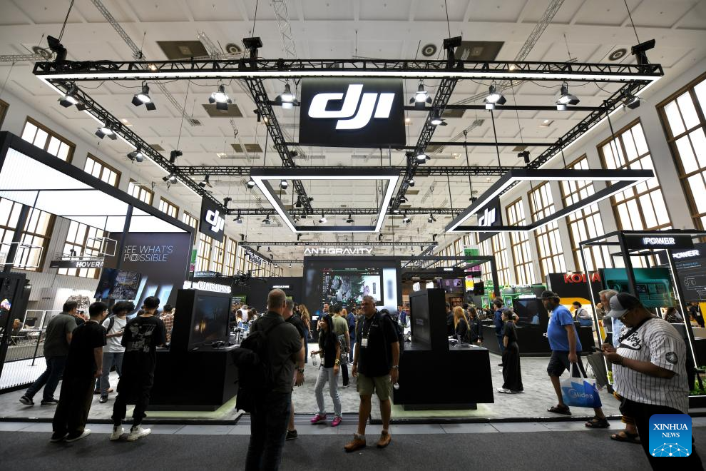 The exhibition area of DJI is pictured at IFA Berlin 2025 in Berlin, Germany, Sept. 5, 2025. IFA Berlin 2025, one of the world's largest trade fairs for consumer electronics and home appliances, opened Friday, spotlighting future-oriented themes such as information technology, artificial intelligence, software and computing power, and sustainable solutions for home, mobility, and lifestyle. (Xinhua/Zhang Haofu)