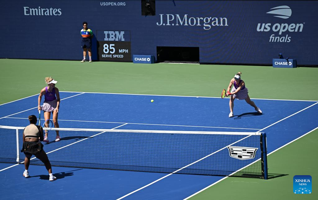 Gabriela Dabrowski (R)/Erin Routliffe return a hit during the women's doubles final match between Gabriela Dabrowski of Canada/Erin Routliffe of New Zealand and Katerina Siniakova of the Czech Republic/Taylor Townsend of the United States at the 2025 US Open tennis championships in New York, the United States, Sept. 5, 2025. (Xinhua/Li Rui)