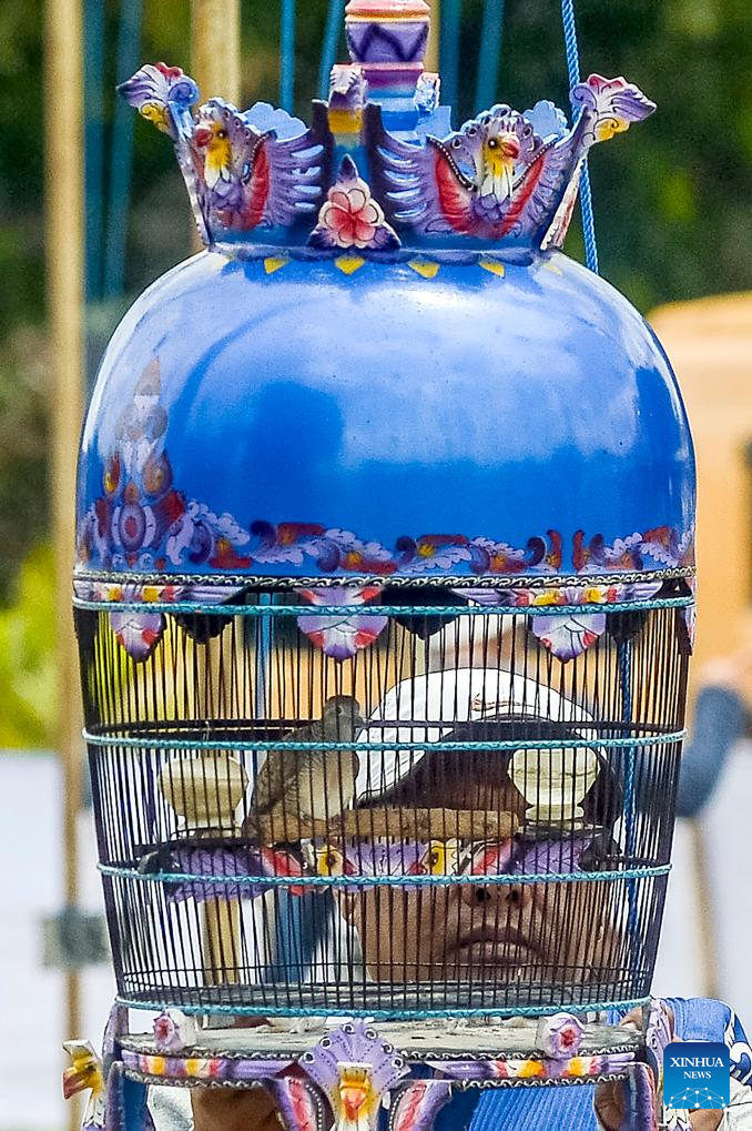 A man prepares for a turtledove chirping contest in Yogyakarta, Indonesia, Sept. 6, 2025. (Photo by Agung Supriyanto/Xinhua)