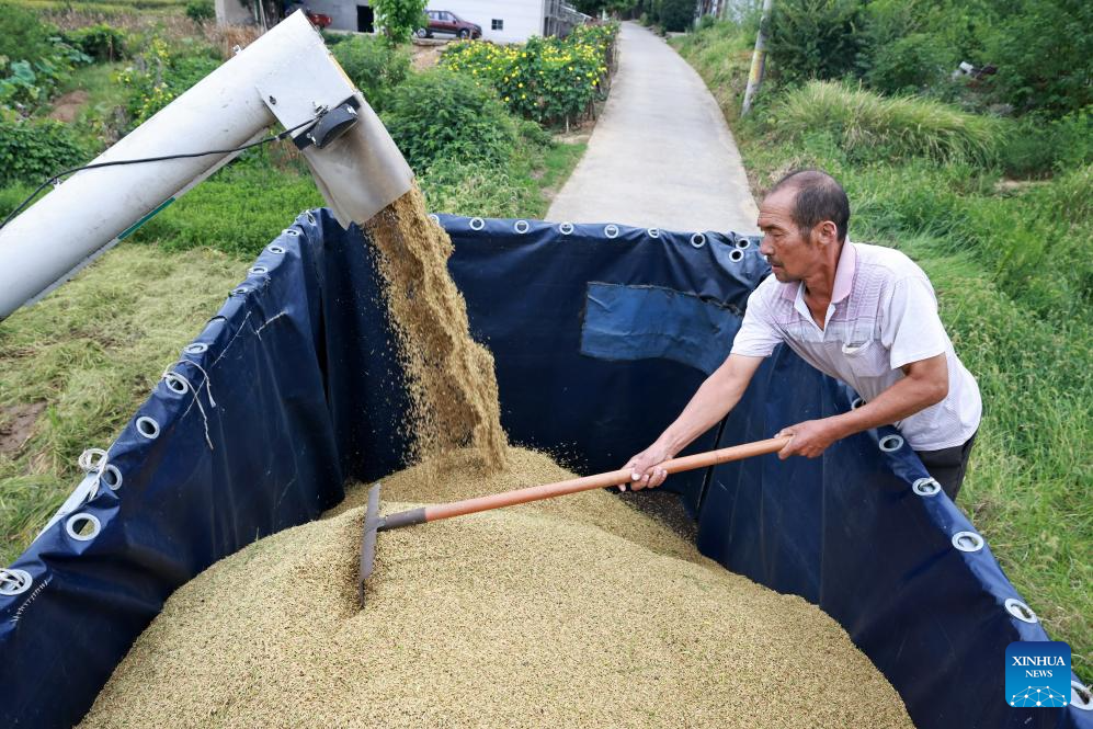 A farmer loads harvested rice onto a truck at a farm in Wuhan, central China's Hubei Province, Sept. 6, 2025. White Dew, a solar term meaning dew curdles and it starts to get cold, falls on Sept. 7 this year. (Photo by Zhao Jun/Xinhua)