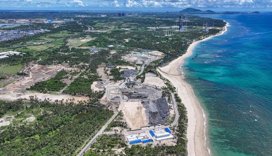 An aerial drone photo taken on Sept. 5, 2025 shows the construction site of the second phase of the Hainan commercial spacecraft launch site in Wenchang, south China's Hainan Province. (Xinhua/Pu Xiaoxu)