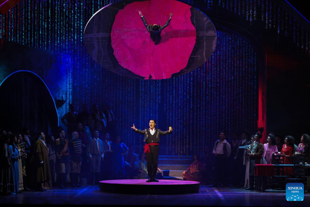 An artist of China National Opera House performs in the opera "Carmen" in Riyadh, Saudi Arabia, Sept. 4, 2025. (Xinhua/Wang Haizhou)