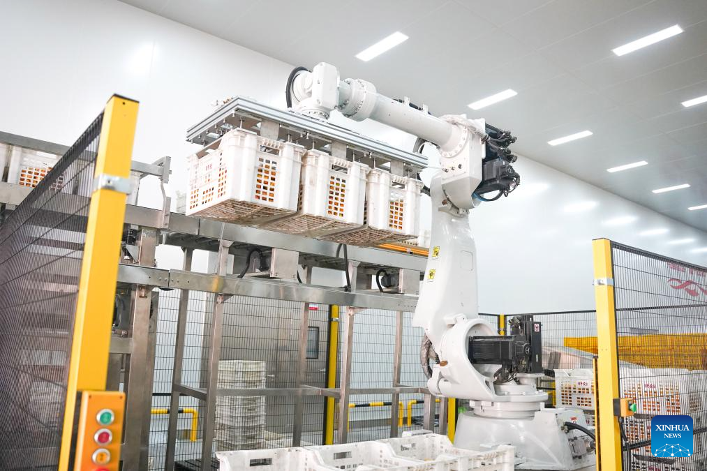 This photo taken on July 28, 2025 shows a full-automatic robot arm working at a company in Ding'an Taling industrial park in Ding'an, south China's Hainan Province. (Xinhua)