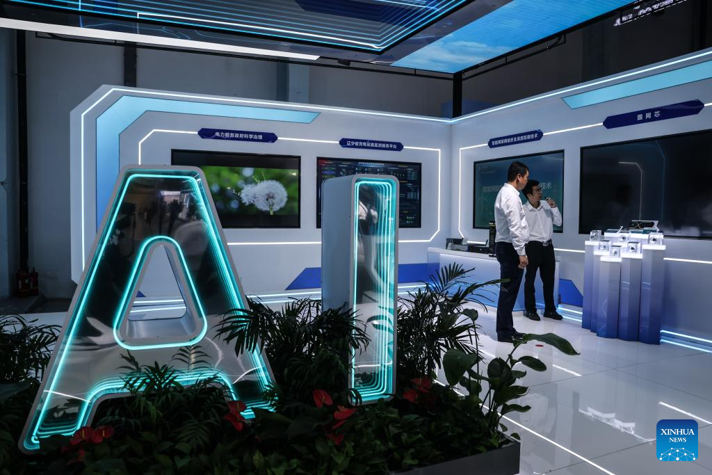 A man visits the exhibition area of the 2025 Global Industrial Internet Conference in Shenyang, northeast China's Liaoning Province, Sept. 6, 2025. Themed "Digital New Chapter, Intelligent New Quality," the 2025 Global Industrial Internet Conference kicked off here on Saturday and will last till Sept. 8. (Xinhua/Pan Yulong)