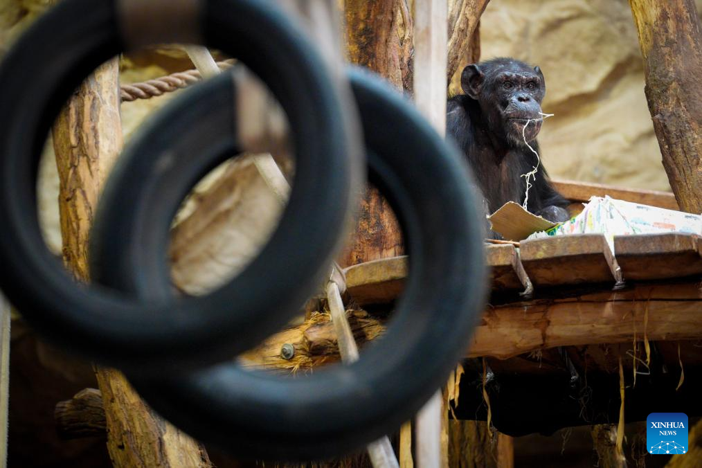 A male chimpanzee named Szymon celebrates his 40th birthday at Warsaw Zoo in Warsaw, Poland, Sept. 5, 2025. (Photo by Jaap Arriens/Xinhua)