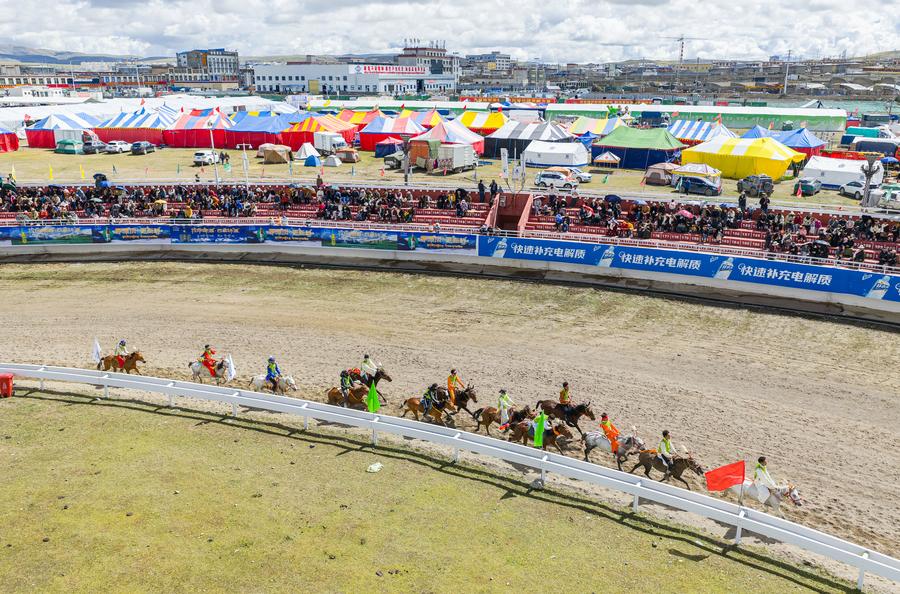 NAGQU, Sept. 7 (Xinhua) -- The 2025 edition of a traditional horse racing festival kicked off in Nagqu on Friday. The three-day festival held on the northern Qinghai-Tibet Plateau features sports competitions, art performances, and cultural tourism activities, drawing large crowds of locals and visitors.
