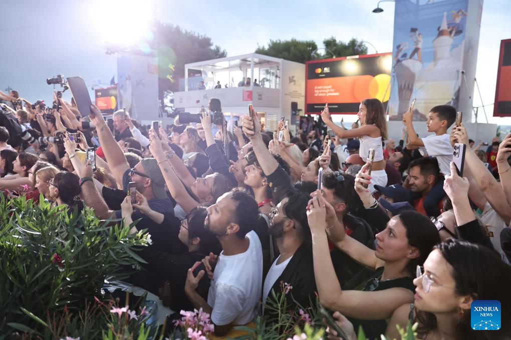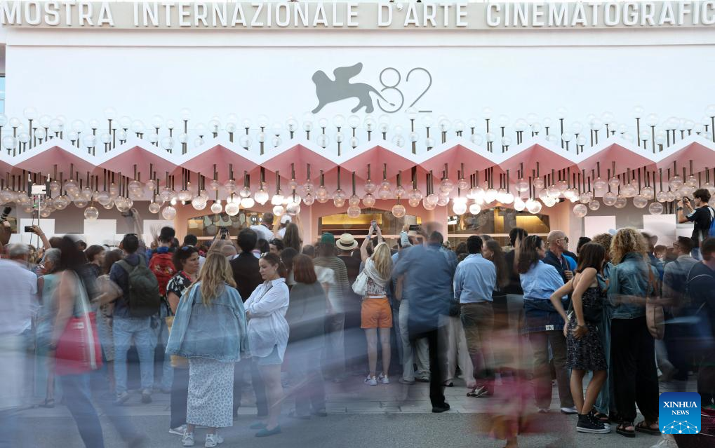 Film fans wait in front of the Palazzo del Cinema during the 82nd Venice Film Festival in Venice, Italy, Aug. 30, 2025. (Xinhua/Li Jing)