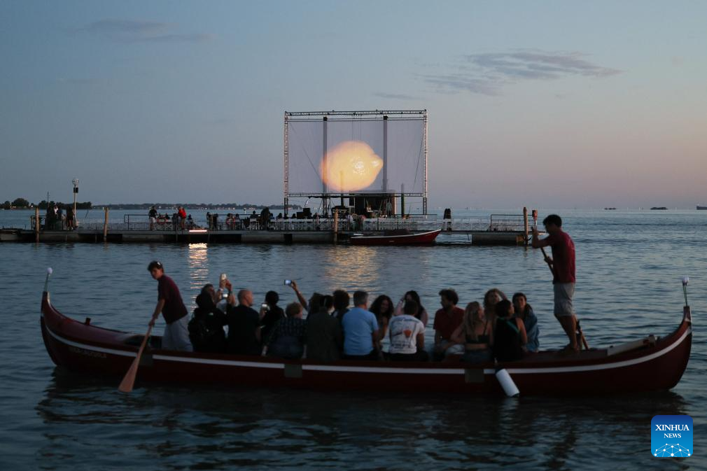 People go to the Water Cinema by boat during the 82nd Venice Film Festival in Venice, Italy, Sept. 3, 2025. (Xinhua/Li Jing)