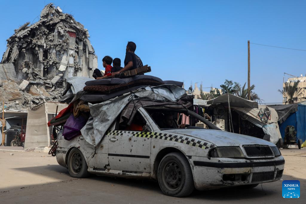 The Israel Defense Forces (IDF) on Saturday announced a new humanitarian zone in the southern Gaza Strip ahead of its planned operation to capture Gaza City in the north. (Photo by Rizek Abdeljawad/Xinhua)