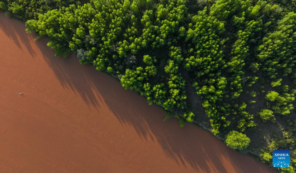 An aerial drone photo taken on Sept. 6, 2025 shows a view of the mudflat along the Yellow River in Pingluo County, northwest China's Ningxia Hui Autonomous Region. (Xinhua/Feng Kaihua)