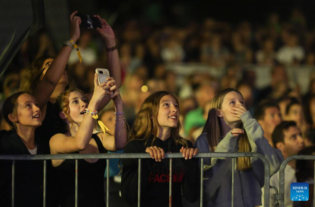 Supporters watch the lead finals of sport climbing at the IFSC Climbing World Cup Koper 2025 in Koper, Slovenia, Sept. 6, 2025. (Photo by Zeljko Stevanic/Xinhua)