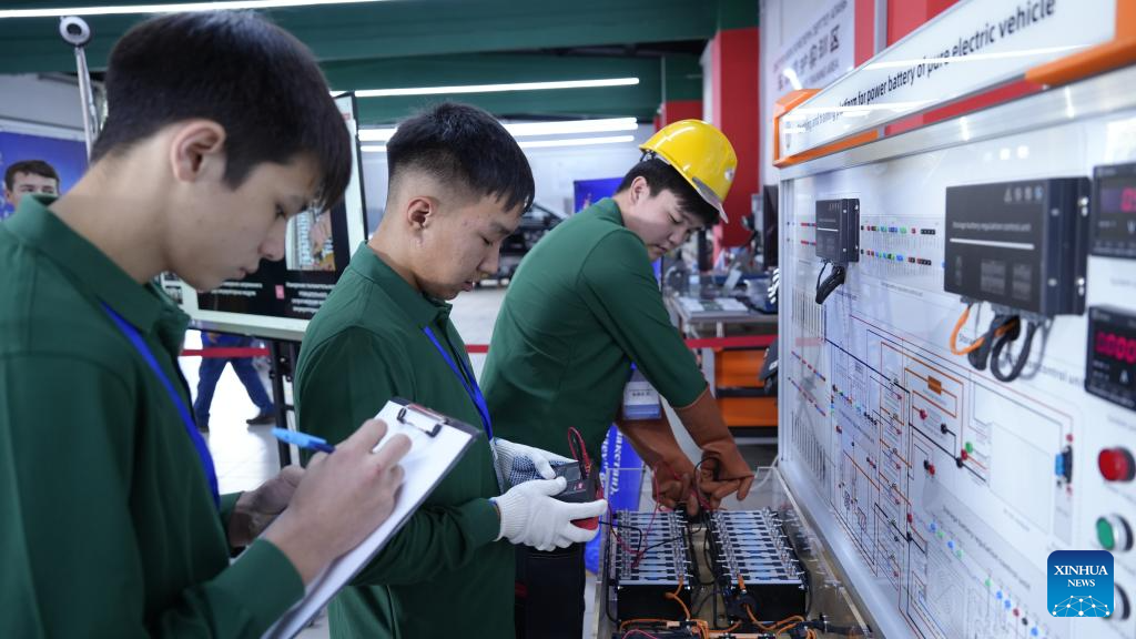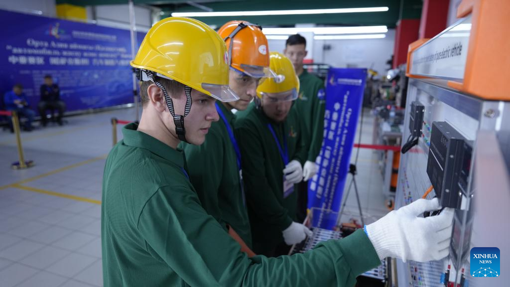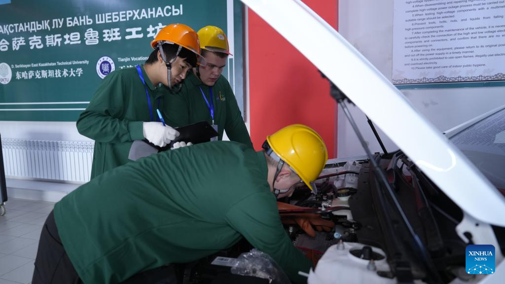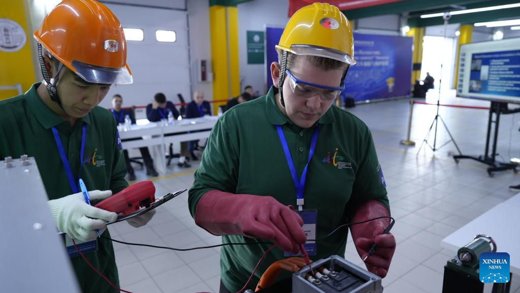 Five teams participated in the Central Asia Division (Kazakhstan) qualifier in the Automobile Manufacturing and Maintenance for the Grand Final of the WVCSC held on Friday at the Luban Workshop of East Kazakhstan Technical University in Ust-Kamenogorsk. (Photo by Kalizhan Ospanov/Xinhua)