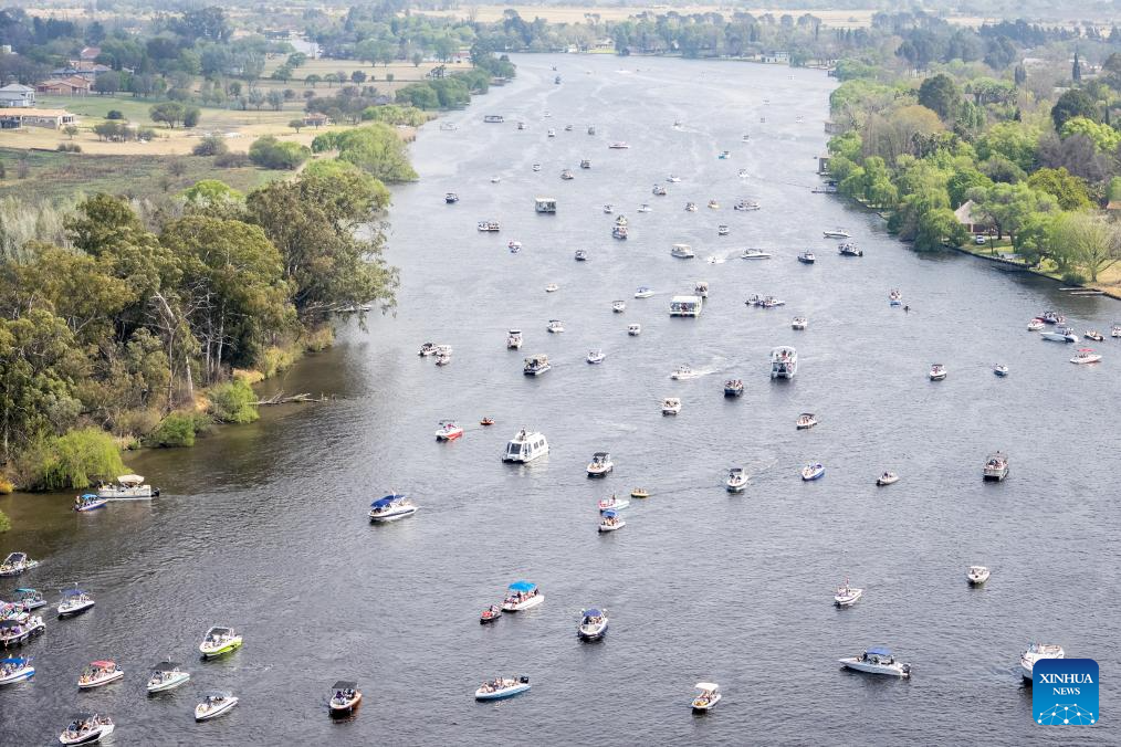 The summer boating season kicked off here on Saturday. Boating on the Vaal River is popular in South Africa. With the length of 1,458 kilometers, the Vaal is the third longest river in South Africa after the Orange and the Limpopo. (Photo by Shiraaz Mohamed/Xinhua)