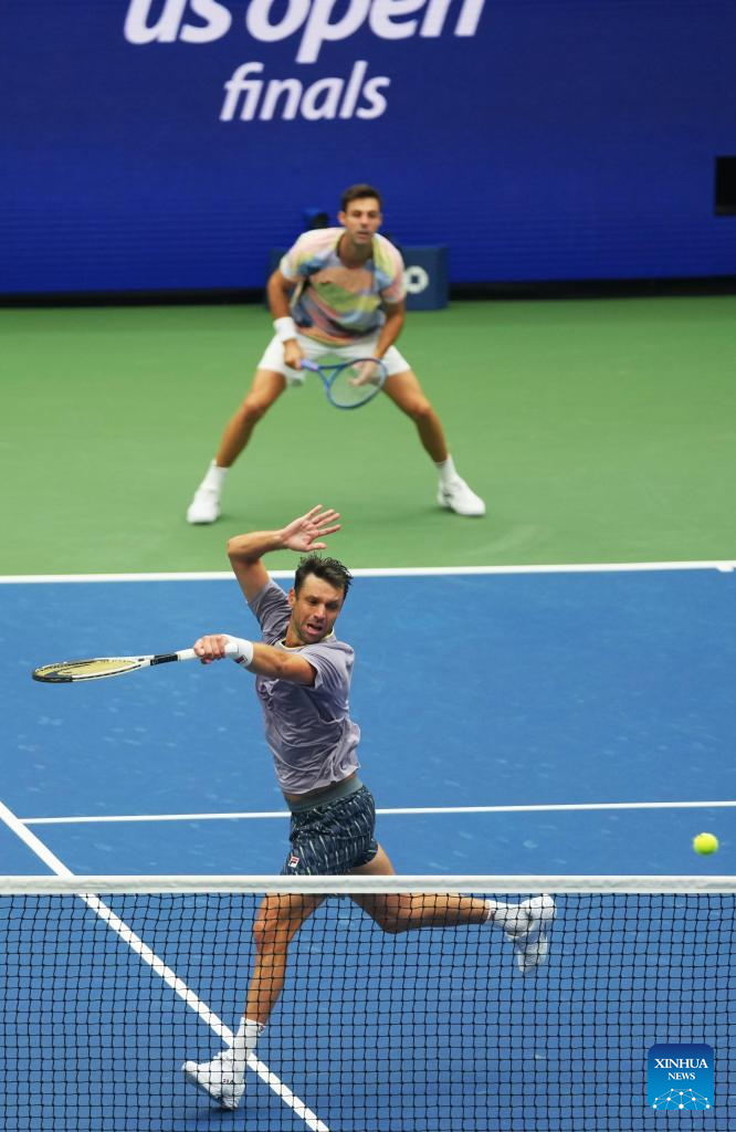 Marcel Granollers/Horacio Zeballos (front) return a hit during the men's doubles final match between Marcel Granollers of Spain/Horacio Zeballos of Argentina and Joe Salisbury/Neal Skupski of Britain at the 2025 US Open tennis championships in New York, the United States, Sept. 6, 2025. (Xinhua/Wu Xiaoling)