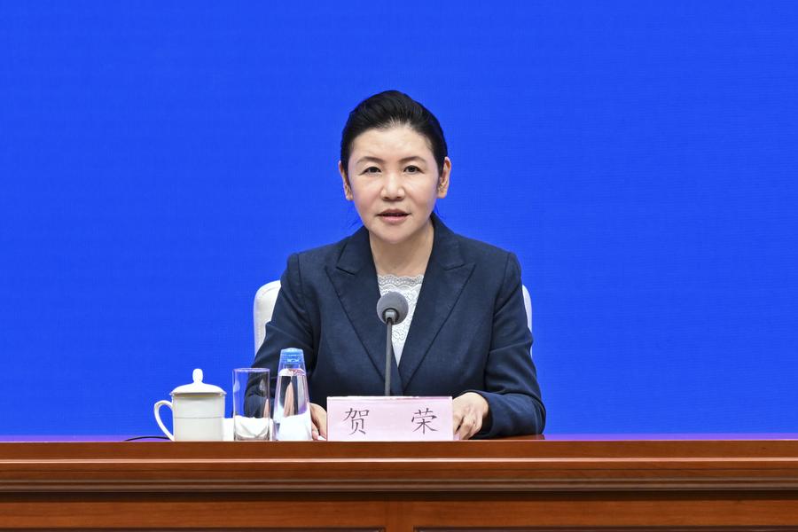 China's Minister of Justice He Rong attends a press conference held by the State Council Information Office (SCIO) on promoting socialist rule of law and judicial administration and serving high-quality development during the 14th Five-Year Plan period (2021-2025) in Beijing, capital of China, Sept. 8, 2025. (Xinhua/Li Xin)