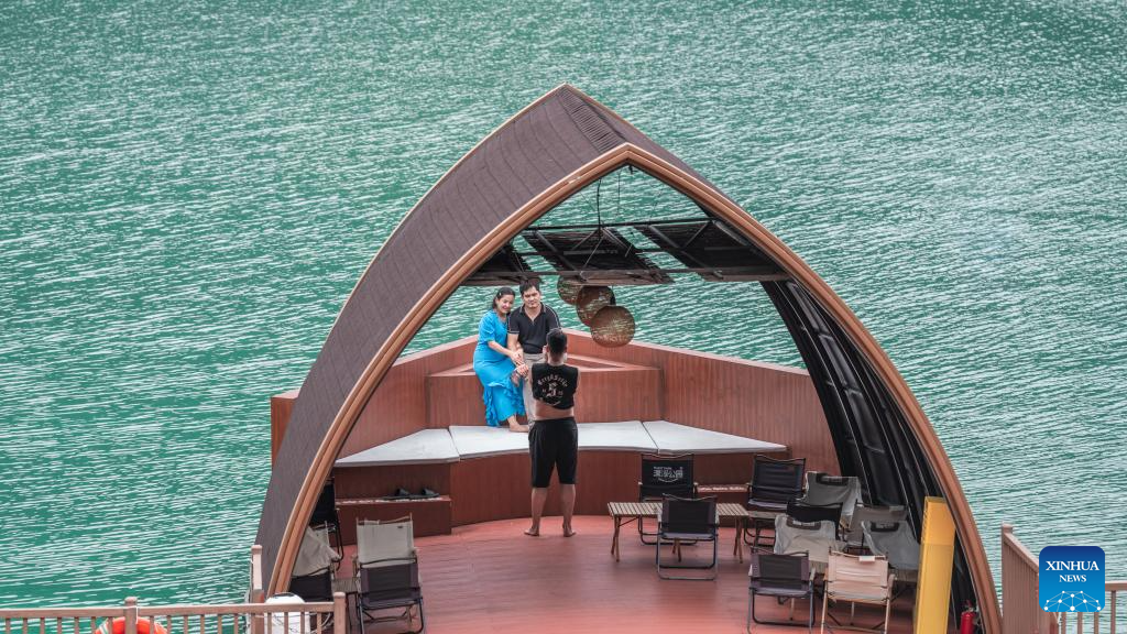 Visitors take photos at a park in Xiongjiang Town of Minqing County, southeast China's Fujian Province, Spet. 6, 2025. In recent years, Xiongjiang Town has been encouraging locals to renovate rural houses and utilize idle spaces to develop an ecological tourism industry by integrating characteristic agriculture, homestays, and rural sightseeing. This initiative has attracted a number of young entrepreneurs to start business. Currently, Xiongjiang Town receives an average of more than 1,700 trips daily, with the peak of over 18,700 trips in a single day during weekend and holiday period. (Xinhua/Zhou Yi)