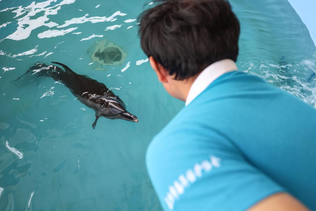 Dolphin "Wan Wan" swims in a pool at a rescue facility in Lingshui, south China's Hainan Province, Sept. 8, 2025. (Xinhua/Zhang Liyun)Dolphin "Wan Wan" swims in a pool at a rescue facility in Lingshui, south China's Hainan Province, Sept. 8, 2025. (Xinhua/Zhang Liyun)