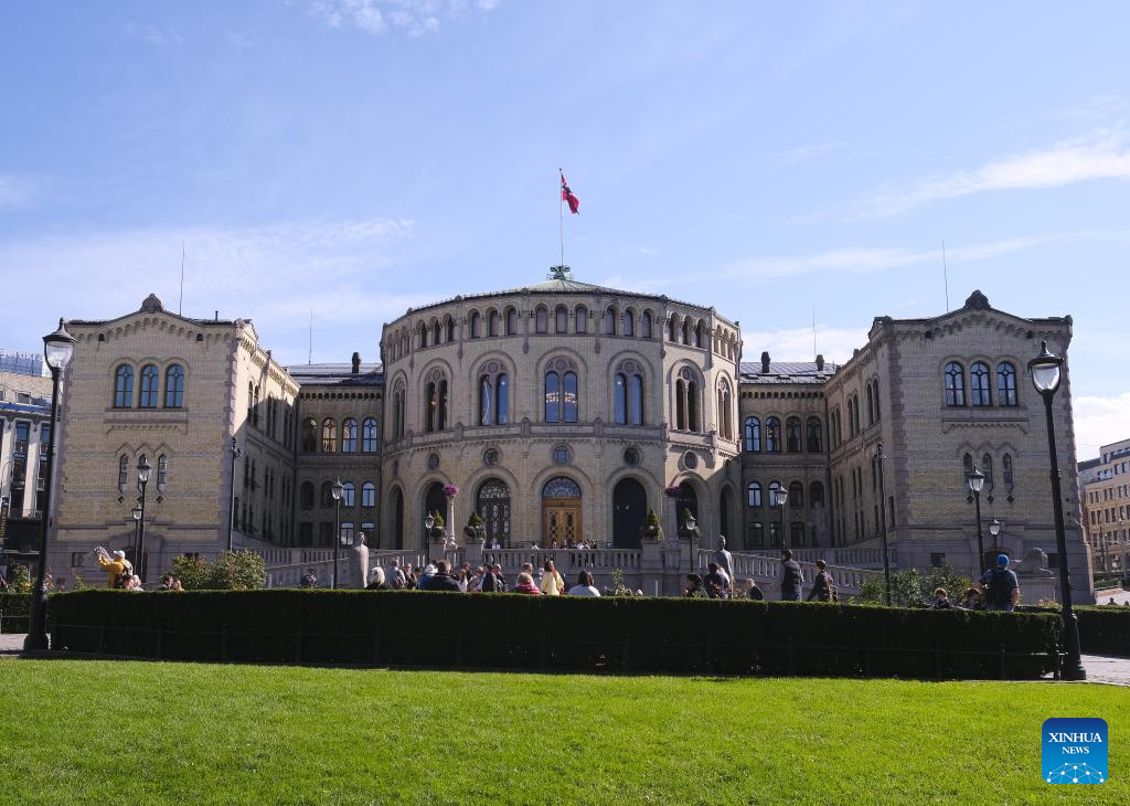This photo taken on Sept. 8, 2025 shows the building of Storting, Norway's unicameral parliament in Oslo, capital of Norway. Norwegians headed to the polls on Monday to elect all 169 members of the Storting, the country's unicameral parliament, across 19 multi-member constituencies. (Xinhua/Zhang Yuliang)