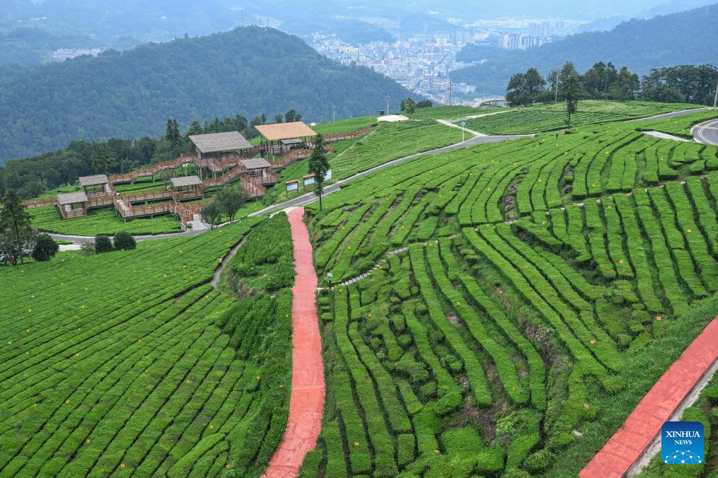 This photo shows a tea garden in Tujia Autonomous County of Wufeng, central China's Hubei Province, Aug. 30, 2025. (Xinhua/Du Zixuan)