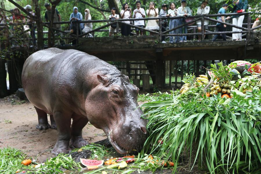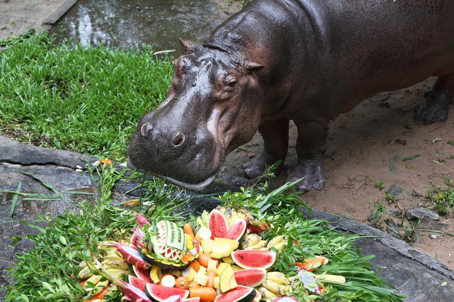 Asia Album: Hippo's birthday celebration in Thai zoo-Xinhua