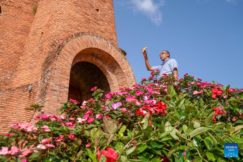 A tourist visits Dongfengyun town in Mile City of Honghe Hani and Yi Autonomous Prefecture, southwest China's Yunnan Province, Sept. 8, 2025. Dongfengyun is a town of specialties related to culture and art. It has kept introducing colorful tourist events and improving local scenery in recent years, and is now a heavily visited landmark for tourism in central Yunnan. (Xinhua/Peng Yikai)