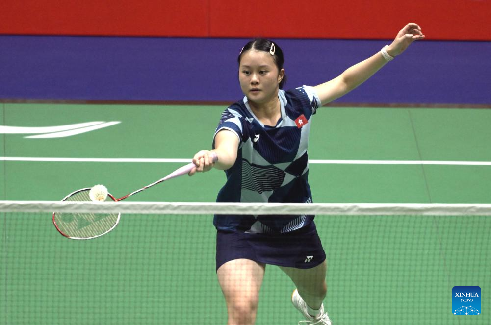 Lo Sin Yan Happy of China's Hong Kong hits a return to Hung Yi-Ting of Chinese Taipei during the women's singles qualification match at Hong Kong Open badminton tournament 2025 in Hong Kong, south China, Sept. 9, 2025. (Xinhua/Lo Ping Fai)