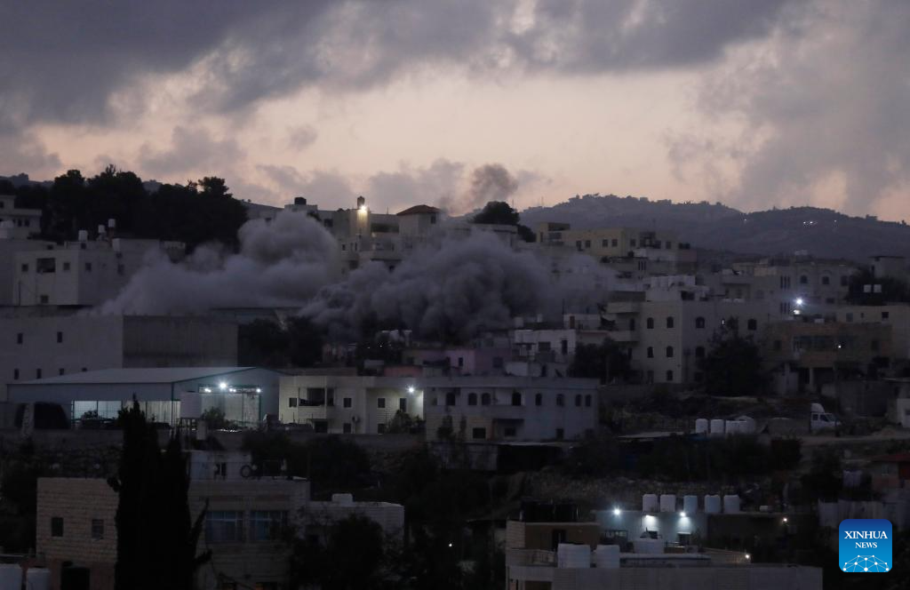 Smoke rises as Israeli forces blow up the house of a Palestinian prisoner in the town of Beit Awwa, west of Hebron, the southern West Bank, on Sept. 9, 2025. (Photo by Mamoun Wazwaz/Xinhua)