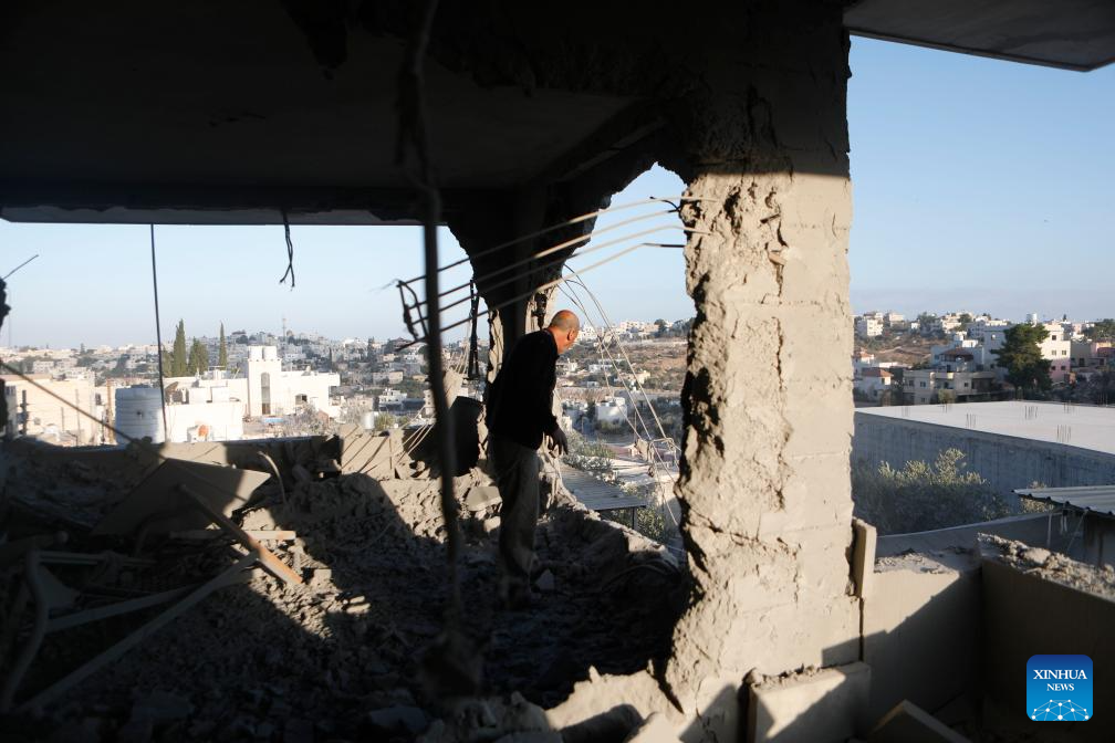 A Palestinian inspects the damage after Israeli forces blew up the house of a Palestinian prisoner in the town of Beit Awwa, west of Hebron, the southern West Bank, on Sept. 9, 2025. (Photo by Mamoun Wazwaz/Xinhua)