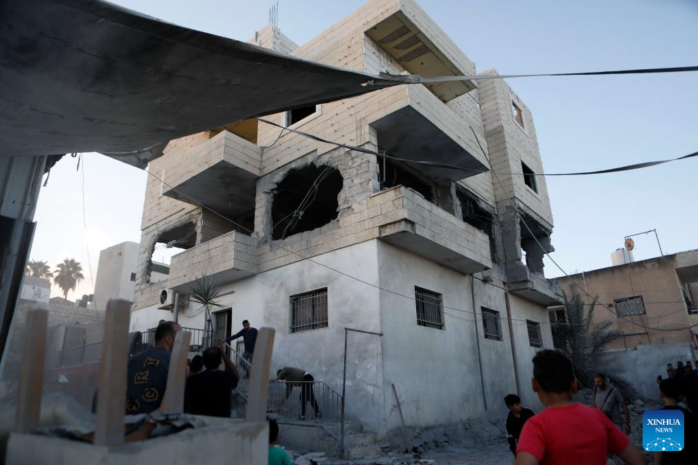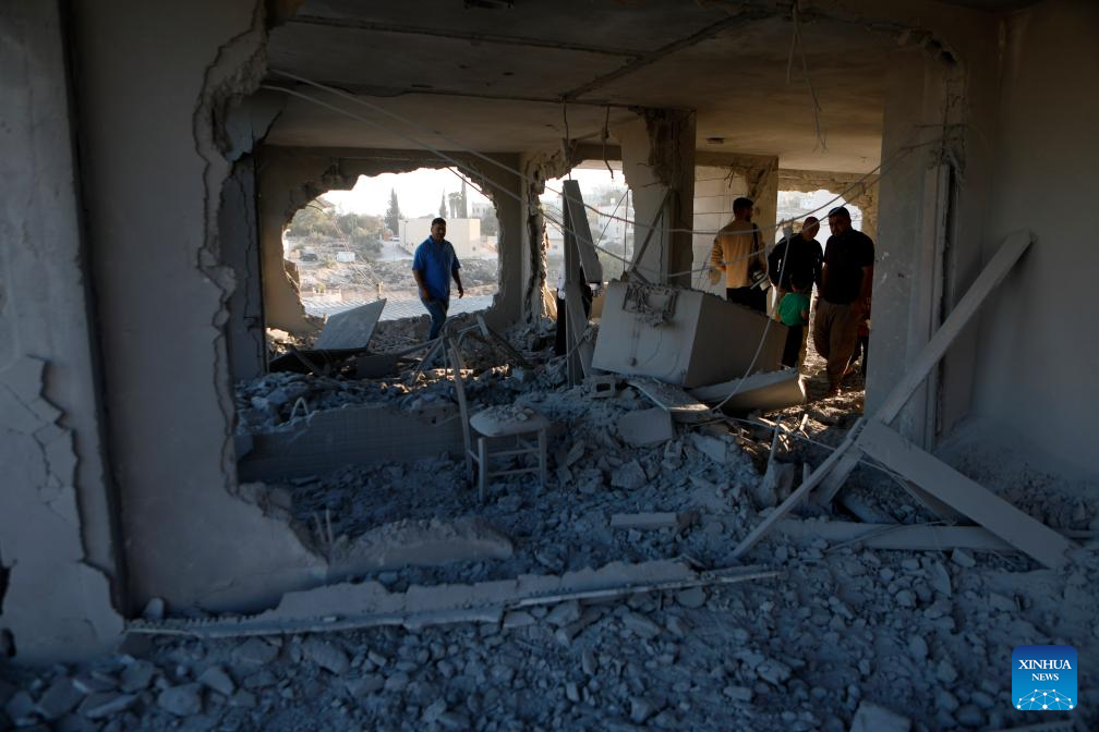 Palestinians inspect the damage after Israeli forces blew up the house of a Palestinian prisoner in the town of Beit Awwa, west of Hebron, the southern West Bank, on Sept. 9, 2025. (Photo by Mamoun Wazwaz/Xinhua)