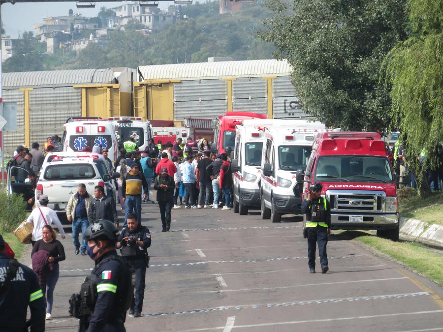 MEXICO CITY, Sept. 8 (Xinhua) -- At least 10 people were killed and over 40 others injured when a double-deck passenger bus was hit by a freight train in central Mexico on Monday, authorities said.