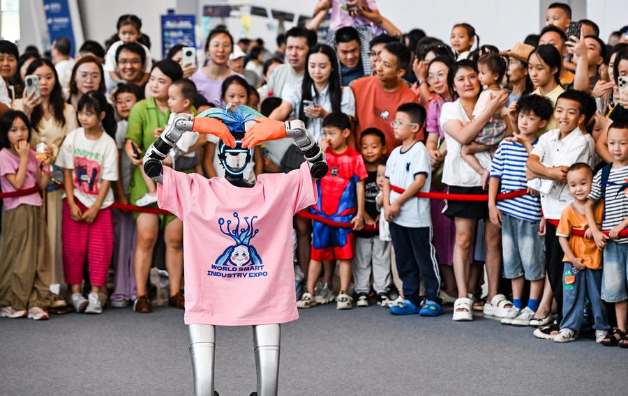 A humanoid robot interacts with visitors at the World Smart Industry Expo 2025 in southwest China's Chongqing Municipality, Sept. 7, 2025. (Xinhua/Wang Quanchao)Dolphin "Wan Wan" swims in a pool at a rescue facility in Lingshui, south China's Hainan Province, Sept. 8, 2025. The stranded dolphin "Wan Wan," rescued in Wanning, Hainan this June, has recovered well after nearly three months of care by a rescue team. The dolphin is expected to be released back into the wild in the near future. (Xinhua/Zhang Liyun)The moon is seen during a lunar eclipse in the sky over Fujin City, northeast China's Heilongjiang Province, Sept. 8, 2025. A "red moon" was witnessed in many parts of the world during a total lunar eclipse started from Sunday night. (Photo by Qu Yubao/Xinhua)French Prime Minister Francois Bayrou delivers his general policy statement prior to a confidence vote over budget cut plan in Paris, France, Sept. 8, 2025. Bayrou on Monday lost his confidence vote in the French National Assembly over his budget plan seeking to save 44 billion euros per year in government spending. (Photo by Aurelien Morissard/Xinhua)A student attends school on the first day of the new school year in the West Bank city of Hebron, Sept. 8, 2025. Palestinian students in the West Bank on Monday began the new school year amid movement restrictions imposed by Israeli forces. (Photo by Mamoun Wazwaz/Xinhua)Rescue workers work at the accident site in the Atlacomulco municipality, the State of Mexico, Mexico, Sept. 8, 2025. At least 10 people were killed and over 40 others injured when a double-deck passenger bus was hit by a freight train in central Mexico on Monday, authorities said. (Photo by Francisco Canedo/Xinhua)People fly kites during a kite festival in the town of Zrarieh, Lebanon, on Sept. 7, 2025. (Photo by Ali Hashisho/Xinhua)Winner Carlos Alcaraz (R) of Spain kisses his trophy as runner-up Jannik Sinner of Italy looks at him after their men's singles final match at the 2025 US Open tennis championships in New York, the United States, Sept. 7, 2025. (Xinhua/Wu Xiaoling)■