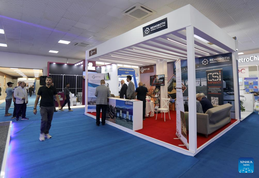 People visit the 3rd Iraq International Exhibition and Conference for Oil, Gas, and Renewable Energy in Baghdad, Iraq, Sept. 8, 2025. The 3rd Iraq International Exhibition and Conference for Oil, Gas, and Renewable Energy kicked off here on Monday. The four-day event focuses on the latest technologies in oil and gas extraction and renewable energy development. (Xinhua/Khalil Dawood)