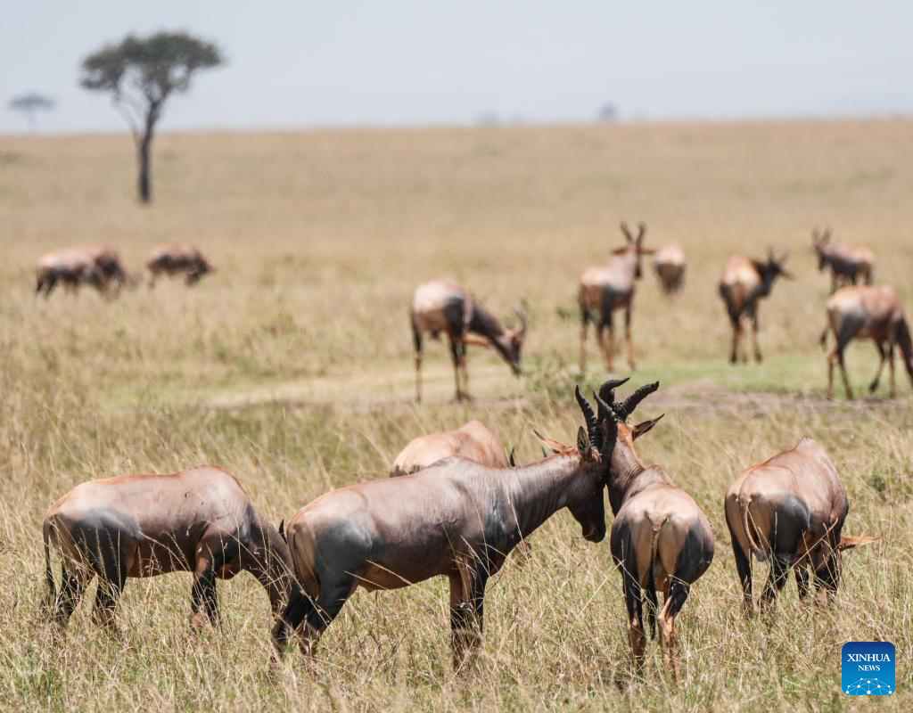 Topis are pictured in the Masai Mara National Reserve in Kenya, on Sept. 6, 2025. Kenya's southwestern county of Narok is home to the world's famous Masai Mara National Reserve where tourists flock to during the country's peak tourism season from July through October to watch the wildebeest migration.
